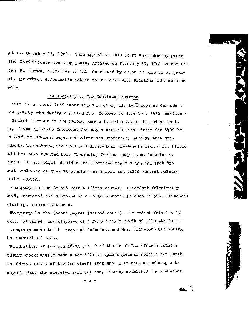 Grand Larceny in the Second Degree (third count): Defendant