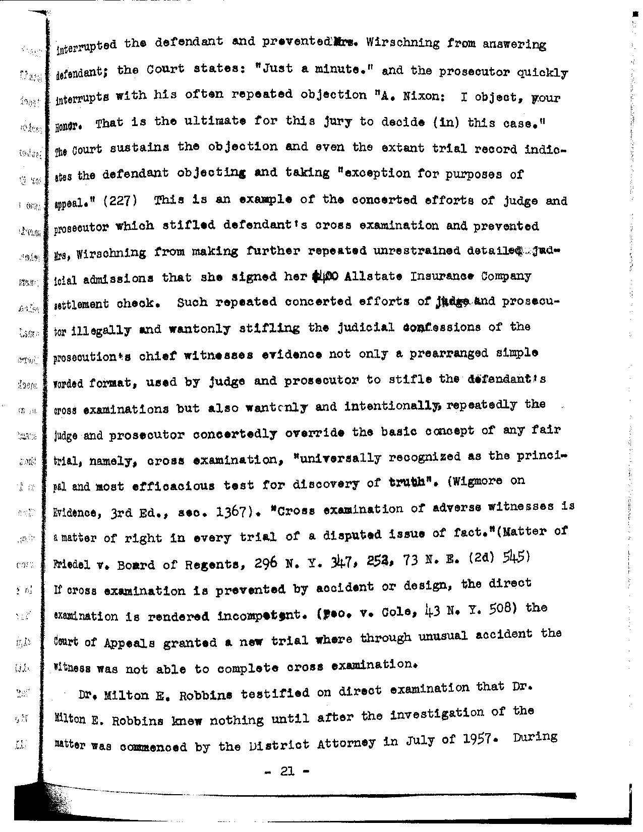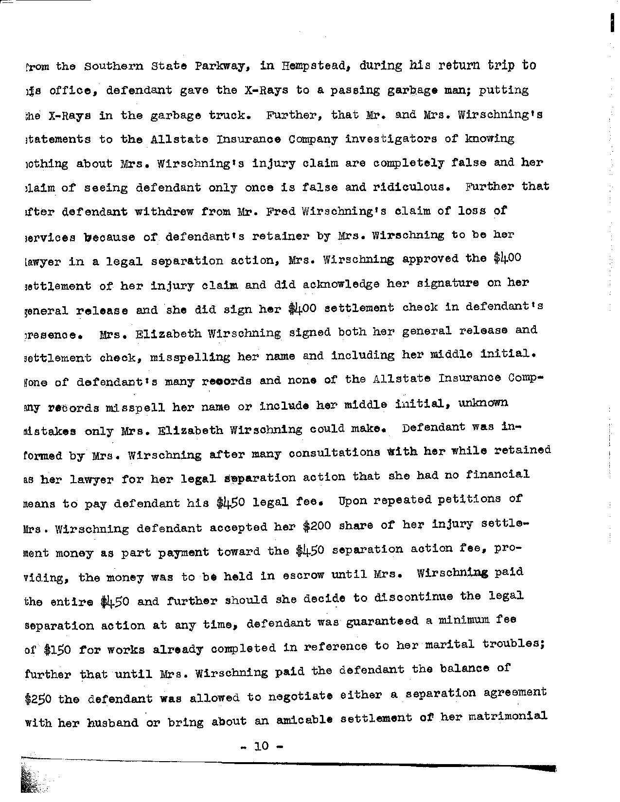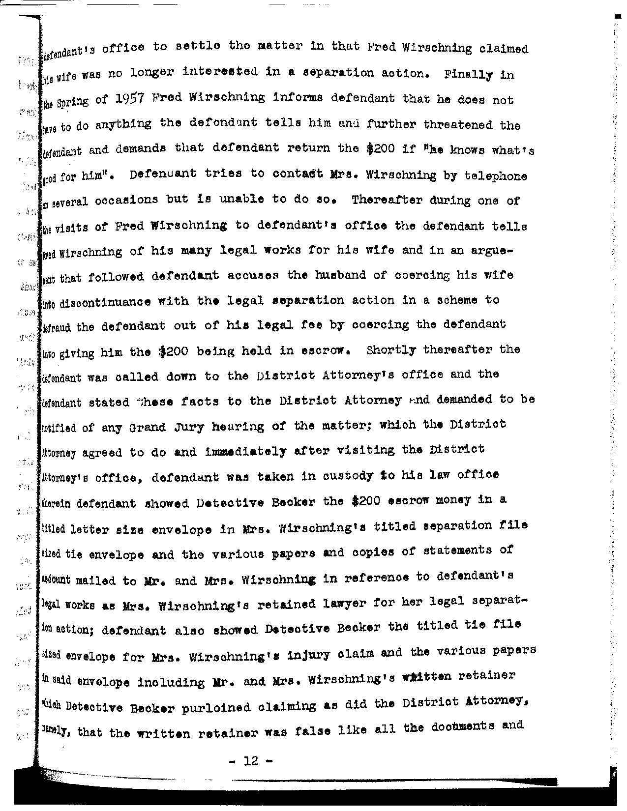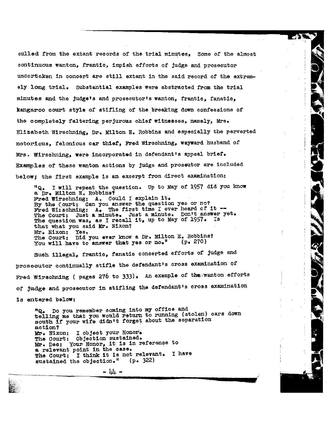 defendant’s cross examinations of Fred Wirschning (pages 276 to